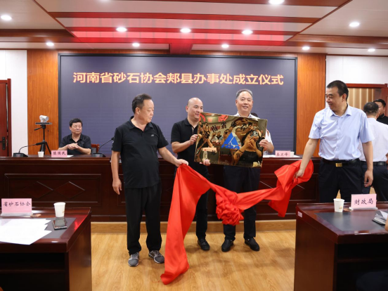 楊凱、吳建洪共同為“河南省砂石協會郟縣辦事處”揭牌。