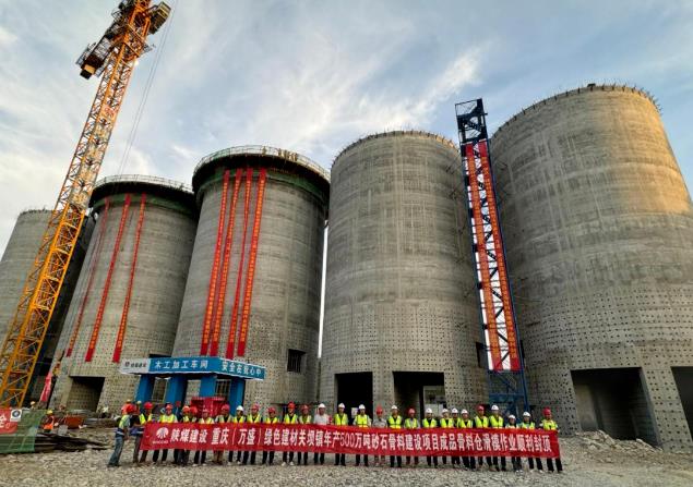 8月26日,重慶(萬盛)綠色建材產業園關壩鎮年產500萬噸砂石骨料建設項目取得重大進展,成品骨料倉滑模施工順利完成,向早日投產達效邁出關鍵一步。