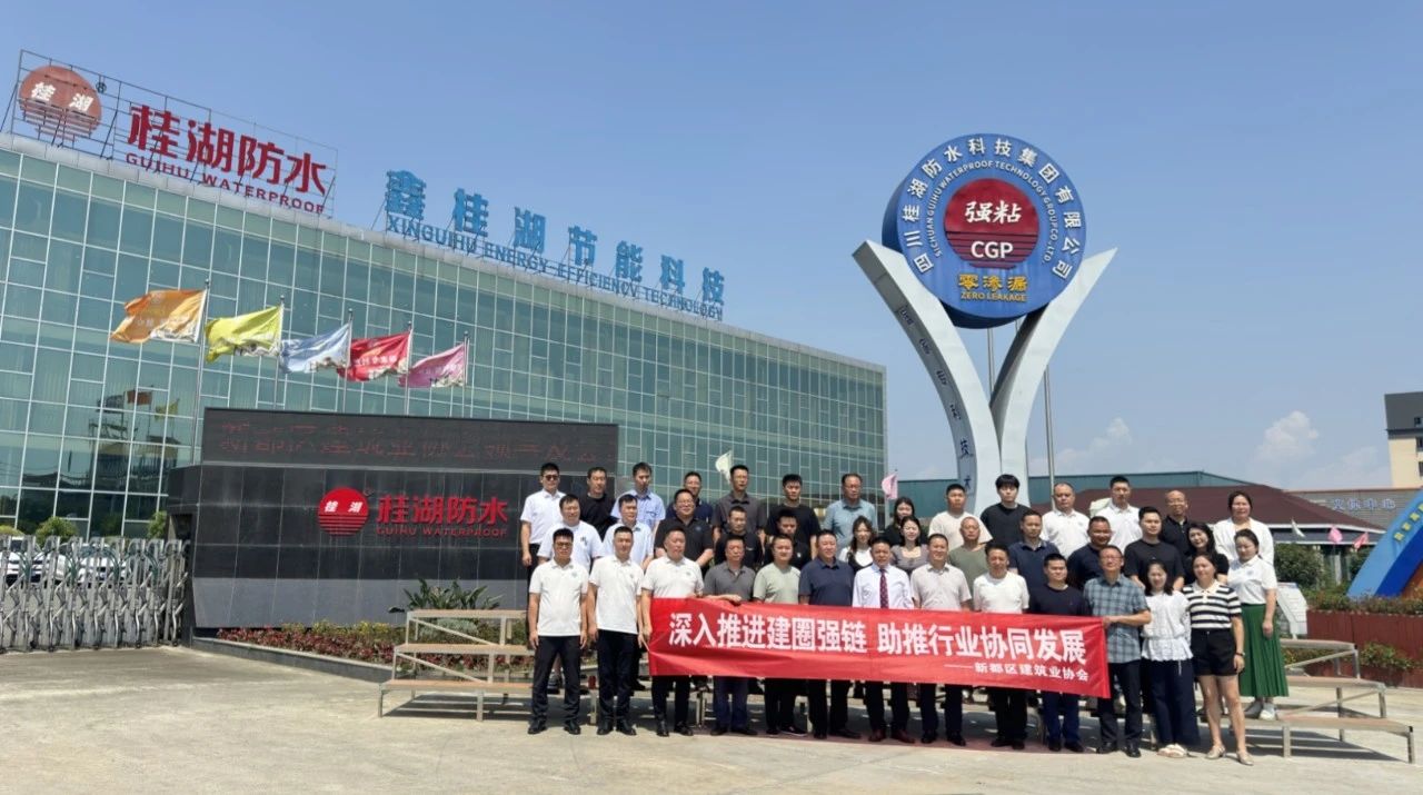 6月11日下午,由成都市新都區建筑業協會組織的“建圈強鏈”主題活動,在四川桂湖防水集團生產總部——四川鑫桂湖防水保溫節能科技有限公司圓滿舉行。