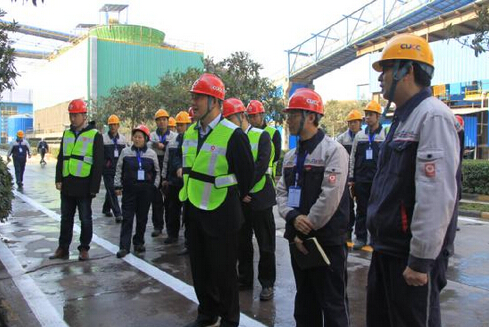 中國聯(lián)合水泥總經(jīng)理孫建成(右前三)在余熱發(fā)電工段檢查管理提升工作