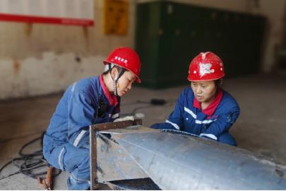 鐵板焊接、金屬切割、掄錘打鏨、鉆孔制模、加油潤滑、打鉚釘、緊螺栓……,攀預熱器、登水泥庫、鉆地坑、戰酷暑、斗嚴寒……,曾經男性機修工的專屬標志,如今也貼在了她的身上。