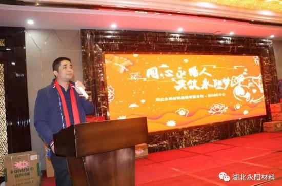 湖北永陽公司在過去的2018年中,涌現出了13個紅旗單位和9名優秀員工,他們奮戰在一線,為永陽的發展立下了汗馬功勞,公司副董事長劉亞洲、總經理黃國鵬親自為他們送去了屬于奮斗者的榮耀,全體參會人員為他們送去了熱烈的掌聲和祝賀聲,最后華南運營中心負責人陳波代表紅旗單位發表致謝感言,并表示2019年會再接再厲、再創佳績。