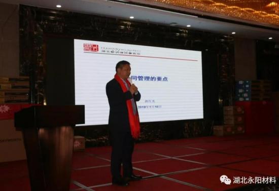 湖北永陽工程公司副總沈永紅代表公司對2018年的客戶服務做了全面的總結,并對2019年的服務做出承諾。最后公司專門邀請唐律師為大家進行了法律知識方面的講解和培訓,尤其是合同簽訂方面的法律知識,進行了詳細的講解和舉例分析,大家聽的很仔細,也積極提出日常遇到的法律疑問,并非常踴躍參與有獎知識問答。