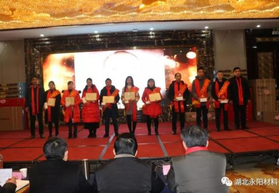 1月10日湖北永陽公司“同心永陽人 共筑永陽夢”2018年年會在中懋國際酒店順利舉辦,湖北省防水協會副會長黃曄、湖北永陽公司董事長劉詩銀、副董事長劉亞洲、總經理黃國鵬、駐外銷售分支機構負責人及公司全體員工均參加了此次年會。