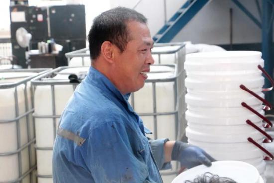 在四川生產基地,涂料車間的工人用手擦去滲透到眼窩里的汗液。據了解,四川眉山連日來最高氣溫直線上升到35℃,當地氣象部門多次發布橙色高溫預警信息。不管是涂料車間還是卷材車間,處處都有著工人們忙碌的身影,他們奉獻擔當,“戰高溫 保生產”的工作熱情讓人動容。