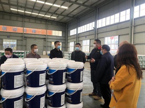 3月17日德陽市副市長李成金、什邡市委副書記、市長王洪、什邡市委常委、市委統戰部部長李光輝、什邡市經信局李局長、經開區等政府部門領導一行蒞臨鑫桂湖防水保溫節能科技有限公司生產基地視察工作,實地考察了鑫桂湖節能科技生產基地;鑫桂湖節能科技副總經理胡宗燕、副總經理劉鐵軍等相關負責人熱情接待并匯報了復工后企業生產經營情況。