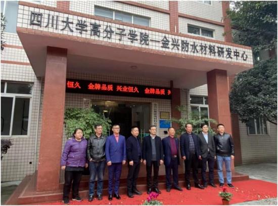 12月9日,四川大學高分子學院金興防水材料研發中心揭牌儀式在金興企業大邑生產基地隆重舉行。參加揭牌儀式的領導有:大邑縣縣委副書記陳一軍,經開區黨工委副書記、管委會主任劉建軍,四川大學高分子科學與工程黨委書記、教授牟德富等。研發中心的成立加深了高分子學科院校和企業的鼎力合作,必將推動綠色防水事業更上一層樓。