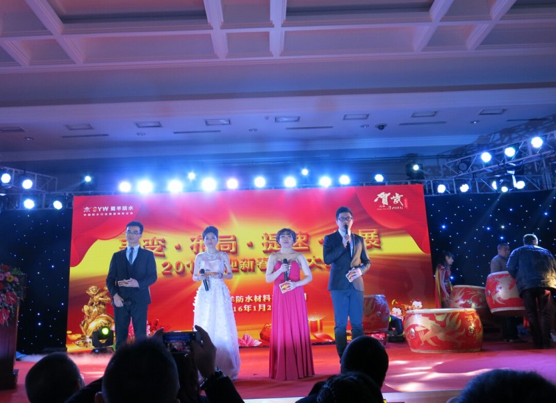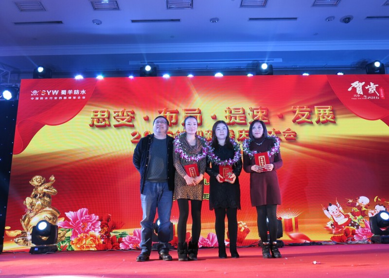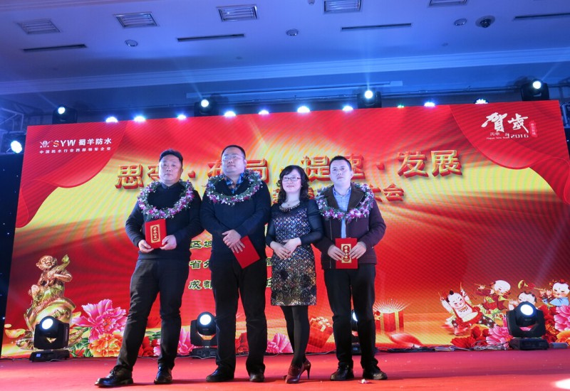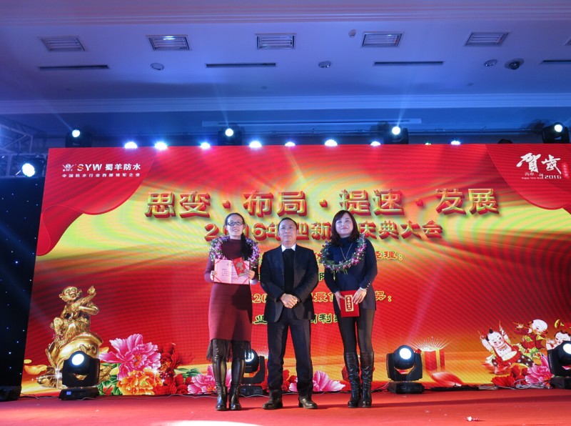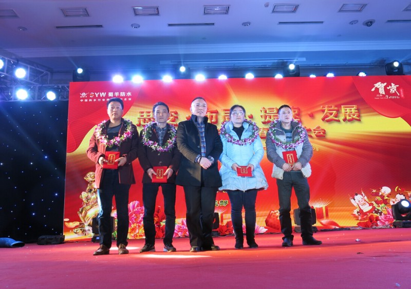 據了解,2015年,四川蜀羊防水材料有限公司好事不斷,防水行業質量提升萬里行進入四川到企業的第一站是蜀羊,為了提高西南防水行業員工的技術水平,他們對2015年“蜀羊杯”全國建筑防水行業職業技能大賽(西南賽區)初賽的工作進行了大力支持,受到行業的高度關注。特別是董事長駱曉彬當選中國建筑防水協會副會長更是成為西部防水行業的一大亮點。2016年4月,他們在陜西的工廠將投產。在市場上的競爭實力將大大增強。下面是年會現場的情景。