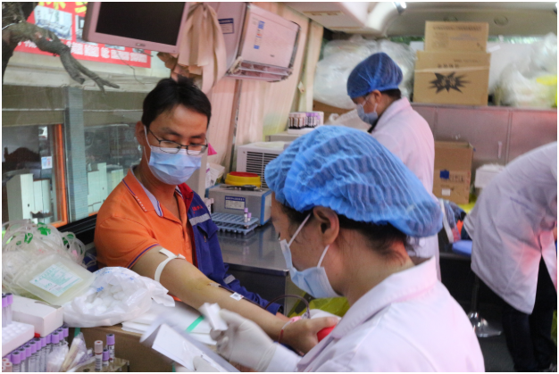 獻血志愿者們一早乘車來到活動現場,在醫務人員的引導下,進入采血車進行獻血。33名云南遠東亞鑫水泥人共獻血5800ml,用自己的實際行動響應著國家無償獻血號召,展現了當代水泥人的責任與擔當。(徐麗波,李粉秀)