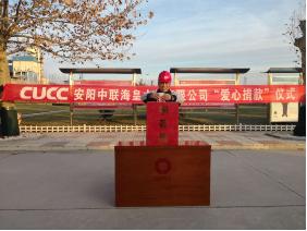 中國聯合水泥總經理助理、河南運營區總裁劉宗虎在臥龍中聯捐款。