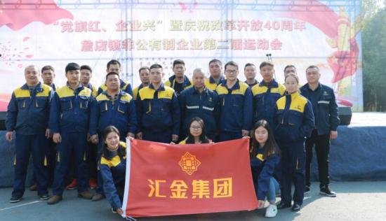 2018年10月30日——11月2日,匯金集團出席“黨旗紅、企業(yè)興”暨慶祝改革開放40周年詹店鎮(zhèn)非公有制企業(yè)第二屆運動會,并在乒乓球、跳繩、俯臥撐、兩人三足等項目中取得優(yōu)異成績,賽出了匯金體育精神,展現(xiàn)了匯金體育風采。