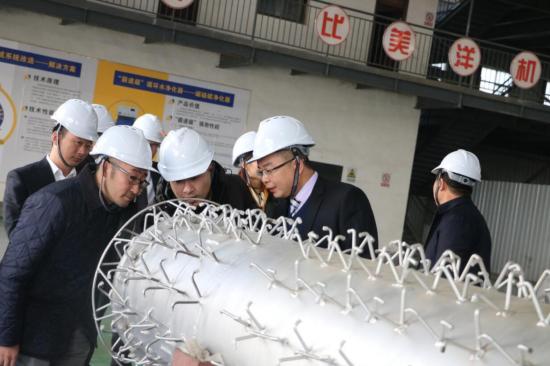 藤本和男先生此次參觀的第一站便是匯金智能裝備生產車間。匯金智能裝備技術總工程師兼副總經理姜維重點講解了HJ節能燃燒器的頭部原理及“三大創新”之處。一進入智能裝備車間,藤本和男先生就被HJ節能燃燒器精美的外觀及精湛的產品加工工藝所吸引,他耐心且細致地聽取了姜博士對匯金燃燒器頭部構造及產品創新點的詳細講解。參觀期間,藤本和男先生頻頻微笑點頭表示認可,并拍照合影留念。