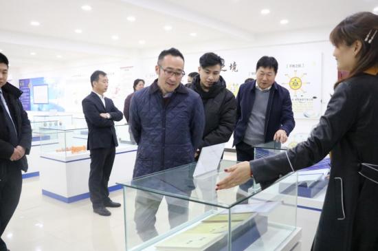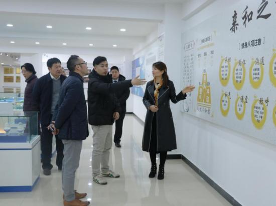 郭榮勛董事長及孔總先后帶領藤本和男先生參觀了匯金集團27年的發展歷程區,HJ燃燒器、無氨脫硝客戶案例與服務區,企業文化及《性格與修身》展示區,功勛人物、社會榮譽、感恩名錄等展示區域。