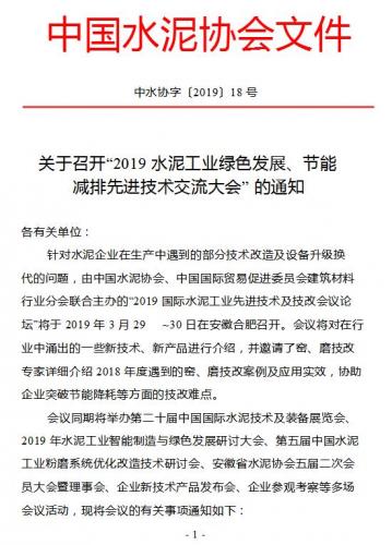 關于召開“2019 水泥工業綠色發展、節能減排先進技術交流大會” 的通知
