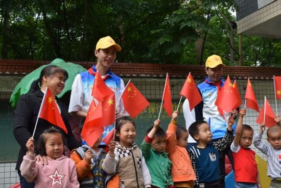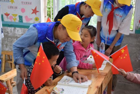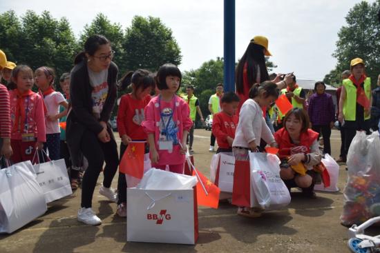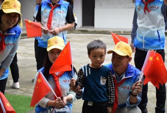 在莊嚴肅穆的升國旗和唱國歌儀式中,活動正式拉開了帷幕,不管是緊張刺激的乒乓球愛心接力游戲,還是熱情高漲的拔河比賽,活動現場一片歡聲笑語,為這片原本寧靜的山區披上一片濃厚的色彩。游戲過后志愿者們為留守兒童發放了文具、書包等學習用品,青年志愿者們忙前忙后,不知疲倦,樂在其中;活動最后以一首《我和我的祖國》大合唱中結束了本次愛心之旅。