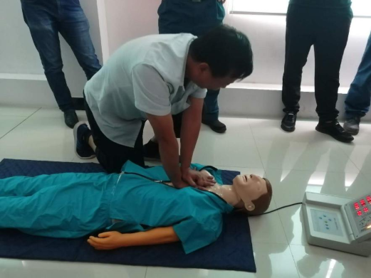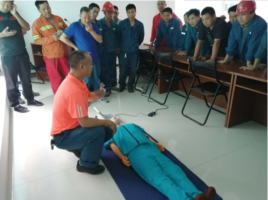 培訓采用仿真人體模型提示和反饋裝置進行,通過模擬仿真,使學員較快掌握胸外按壓的位置、頻率、力度和按壓的次數,收到較好的教學效果。公司安環部要求參訓的人員做好針對全體員工的轉訓工作,并將不定期進行抽查和檢查。