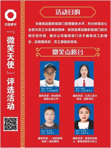 后勤工作不僅僅是嚴謹嚴肅的,更應該是暖心的。為提升公司后勤職能部門服務質量,強化員工服務意識,更好的展現后勤人員的風采和魅力,真正做好為員工辦實事工作。7月1日,貴州中誠水泥開展了“微笑天使”評選活動。