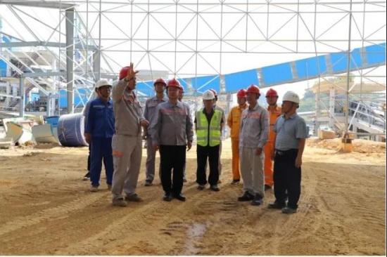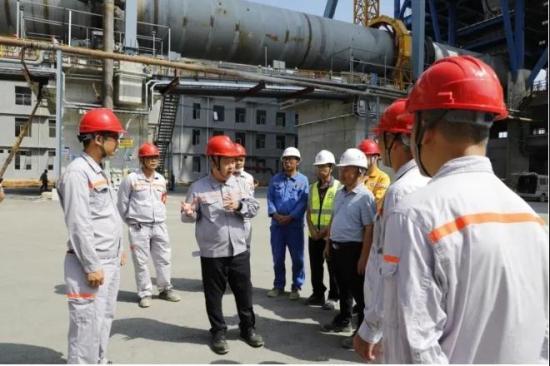 楊義先后到原料堆場、窯中、余熱發電等關鍵部位了解各系統試機情況,與技改項目部及參建方進行交流。楊義對奮戰在施工現場的參建方及各基地援建人員保安全、搶進度、抓質量,全力推進工程建設所付出的努力表示感謝。