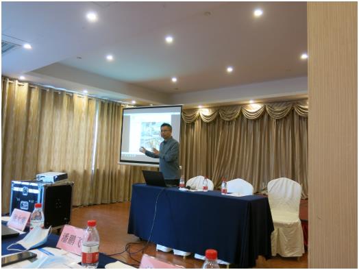 (圖為熊教育在首屆技術交流會發言時的情景)