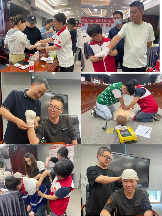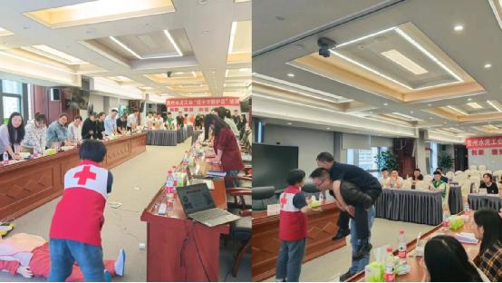 通過圖文并茂、深入淺出的講解,全體學員從視覺、聽覺、觸覺全方位了解應急救護基礎理論知識。培訓現場氣氛活躍,學習熱情高漲。在實操訓練環節,中心培訓老師為大家詳細講解胸外心臟按壓、人工呼吸和AED使用的操作步驟和關鍵細節,參訓學員們積極踴躍地進行實操練習,初步掌握自救和互救基本技能。