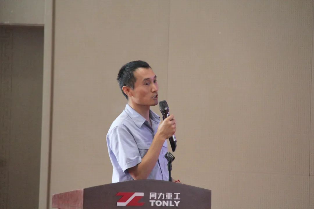 同力科技服務(wù)主管邊剛強對2023年新能源車輛上半年服務(wù)工作進行了總結(jié)及下半年工作計劃。他強調(diào),同力科技要為客戶提供新能源智能化非公路寬體自卸車應(yīng)用方案與全程專業(yè)服務(wù),與客戶一起共建高效、安全的綠色礦山。