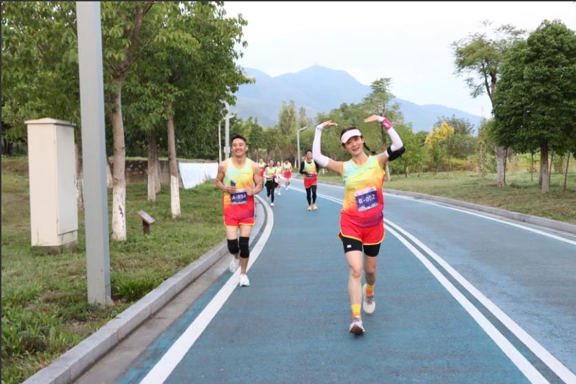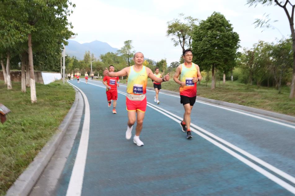 放眼前半程,選手們體力充沛,加快配速,你追我趕,交替領先,或一枝獨秀、或三五成群、或團隊作戰,大家迎著秋日暖陽,伴著青山綠水,掩映邛海碧波,奮力向前,力爭第一次體能極限到來前,創造好成績,爭取主動權......