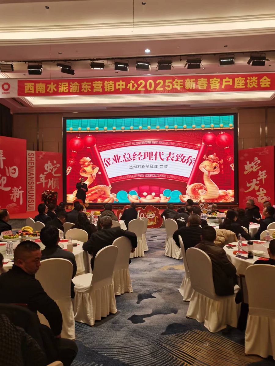 1月19日,西南水泥渝東營銷中心2025年新春客戶座談會在四川省達州市鳳凰國際大酒店舉辦,來自上級單位相關領導、兄弟單位、和客戶共計200多人參加座談交流,F場的情景是大家對去年工作的美好回憶和對今年工作充滿了信心。
