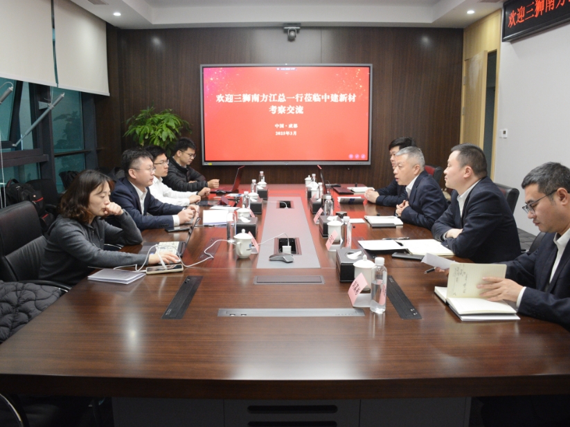 3月6日至7日,浙江三獅南方新材料有限公司總裁江科甫一行赴中建西部建設新材料科技有限公司考察交流,中建西部建設新材料科技有限公司黨委書記、董事長陳赤,副總經理王業江出席座談交流會。