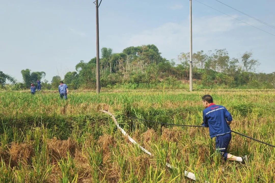 2024年夏季,高溫紅色預警天氣頻繁出現。面對持續高溫的嚴峻“烤”驗,企業生產用水取水口水位急劇下降,積水枯竭,生產供水斷流,企業面臨停產。黨員突擊隊隊長迅速響應,帶領隊員奔赴現場,找水、借電,率先挽起褲腿下河排查河道情況,準備鋪設抽水管道。隊員們齊心協力,在狹窄且崎嶇難行的鄉村道路上穿梭往返,高效運送并安裝抽水設備。盡管酷暑難耐,汗水浸濕衣衫,但沒有一人退縮。經過不懈努力,僅僅耗時1天,便完成了2公里輸水管道的鋪設,成功恢復生產供水,讓缺水危機化險為夷,有力保障了企業生產平穩有序運行。