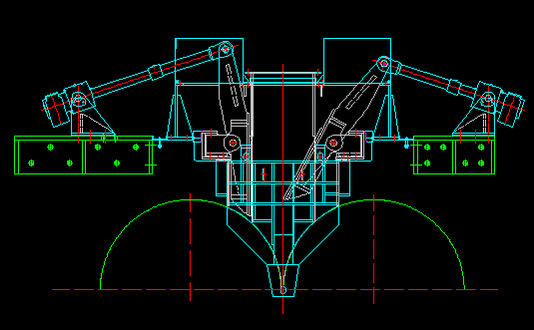 下圖為杠桿鉸鏈式中心進料雙調節進料裝置示意圖: