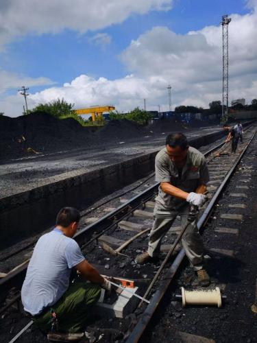 在檢修過程中,檢修人員克服烈日的“炙烤”,神情專注,用工具認真的敲打著、安裝著每一個承載牽引鋼絲繩的托輥基底。幾個小時過去,增裝的16個托輥及其基底安裝就緒,并順利裝入軌枕間的道床。隨后,檢修人員又更換了磨損嚴重的鋼絲繩,給牽引繩換上了“新裝”。
