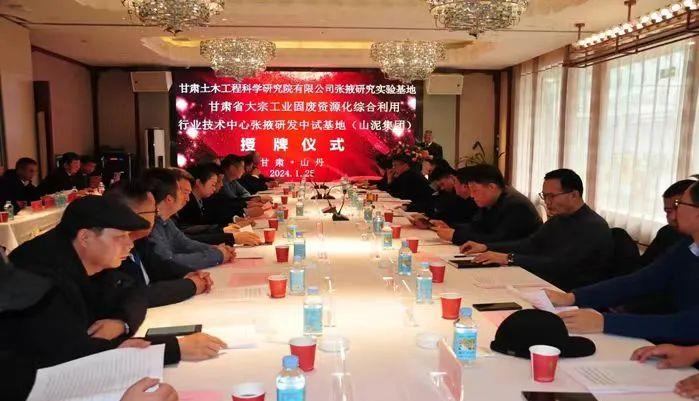 1月25日,由甘肅省工業(yè)和信息化廳批復(fù),依托甘肅土木工程科學(xué)研究院有限公司成立的“甘肅省大宗工業(yè)固廢資源化綜合利用行業(yè)技術(shù)中心”在張掖市山丹縣舉行 “甘肅省大宗工業(yè)固廢資源化綜合利用行業(yè)技術(shù)中心張掖研究中試基地”揭牌儀式。
