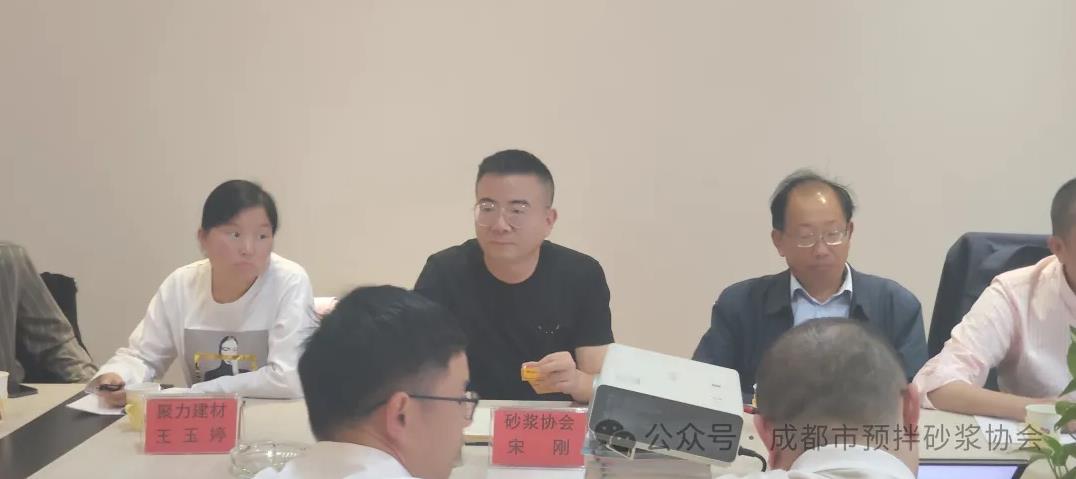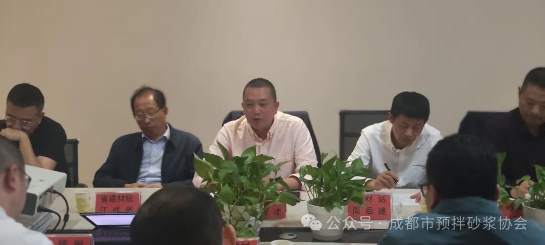 成都市建設工程材料監督服務站 代正才站長、周后建科長;四川省建材工業研究院高級工程師江成貴出席會議并講話。成都市預拌砂漿協會會長宋剛與參會企業代表交流,成都市預拌砂漿協會副會長巴東主持會議。