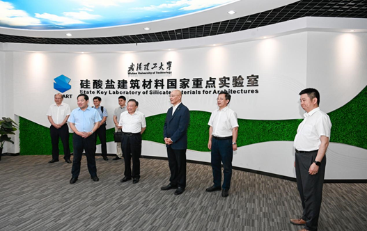 2023年9月19日,中國建筑材料聯(lián)合會黨委書記、會長閻曉峰一行到武漢理工大學(xué),與武漢理工大學(xué)黨委書記信思金座談,聽取、調(diào)研了武漢理工大學(xué)牽頭承擔(dān)中國建筑材料聯(lián)合會提出的全國建材行業(yè)重大科技“揭榜掛帥”攻關(guān)項(xiàng)目進(jìn)展情況,參觀了硅酸鹽建筑材料國家重點(diǎn)實(shí)驗(yàn)室、材料復(fù)合新技術(shù)國家重點(diǎn)實(shí)驗(yàn)室、光纖傳感技術(shù)與網(wǎng)絡(luò)國家工程研究中心等國家級研究機(jī)構(gòu),并與姜德生院士、張清杰院士、張聯(lián)盟院士交流。