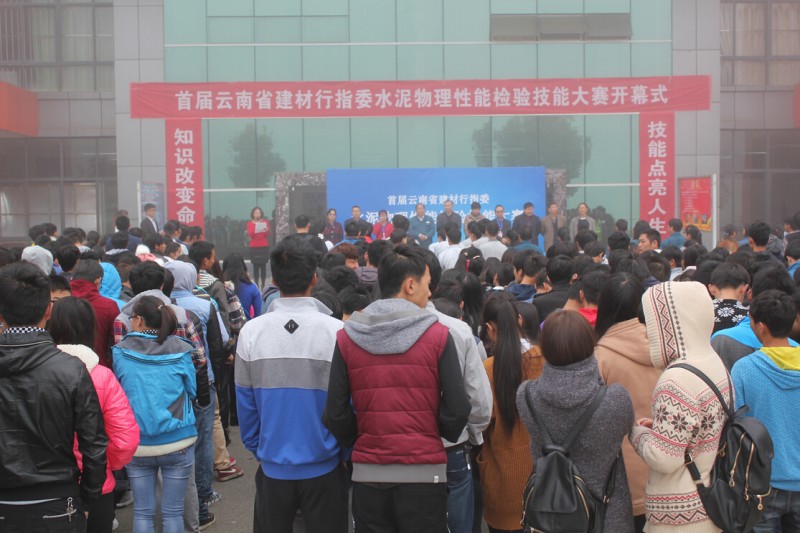 “首屆云南省建材行指委水泥物理性能檢驗技能大賽”于11月19-20日在昆明冶金高等?茖W校建材學院舉行。20日上午9時舉行競賽開幕式,云南省教育廳高教處副處長謝懷昆、云南水泥建材集團有限公司副總經理毛忠禮、昆明冶金高等?茖W校副校長李小薇、實訓處處長陳福亮、云南省建材職業教育教學指導委員會主任委員,昆明冶專建材學院院長周惠群等領導參加開幕式。