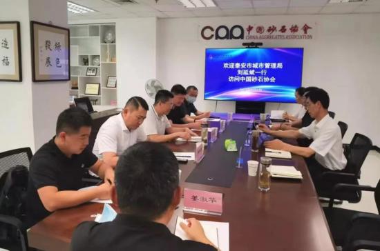 9月8日,山東省泰安市城市管理局領(lǐng)導(dǎo)一行到中國砂石協(xié)會座談交流。中國砂石協(xié)會會長胡幼奕表示歡迎。