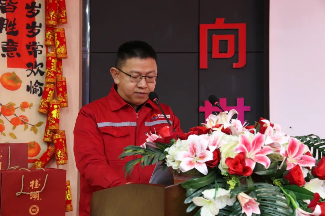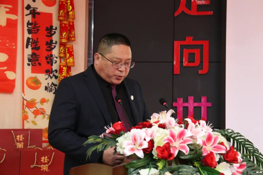 董事長孫軍忠做重要致辭:他首先向全體員工致以新春的祝福,并對大家過去一年的辛勤工作和無私奉獻表示衷心的感謝。他強調,2024年取得的成果是全體員工團結一心、共同拼搏的結果,為2025年的發展奠定了堅實基礎。同時,對獲得表彰的同事表示祝賀,并鼓勵他們將榮譽化為動力,繼續精益求精。展望未來,他呼吁全體員工團結一心、攜手同行,共同迎接新的挑戰,為桂湖防水的發展貢獻力量,共創輝煌未來。