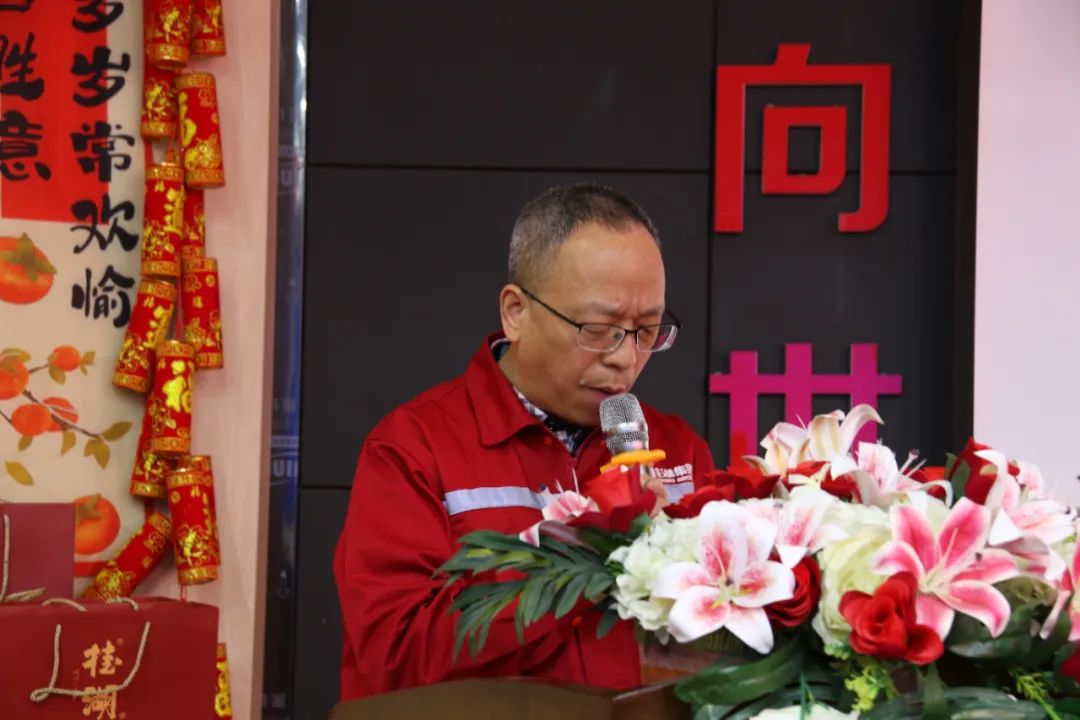 鑫桂湖總經理劉鐵軍對2024年生產總部的工作進行了回顧,并對新的一年做出期望。他表示,2024年公司堅持年初戰略定位,優化生產工藝,狠抓安全、環保、質量和成本控制,讓品牌穩居行業位置。同時,表示現在行業競爭激烈,市場萎縮,新技術、新產品不斷涌現。我們在新的一年要面對嚴峻的行業挑戰,希望大家充滿信心與期待,以破局者的姿態踏上新征程。