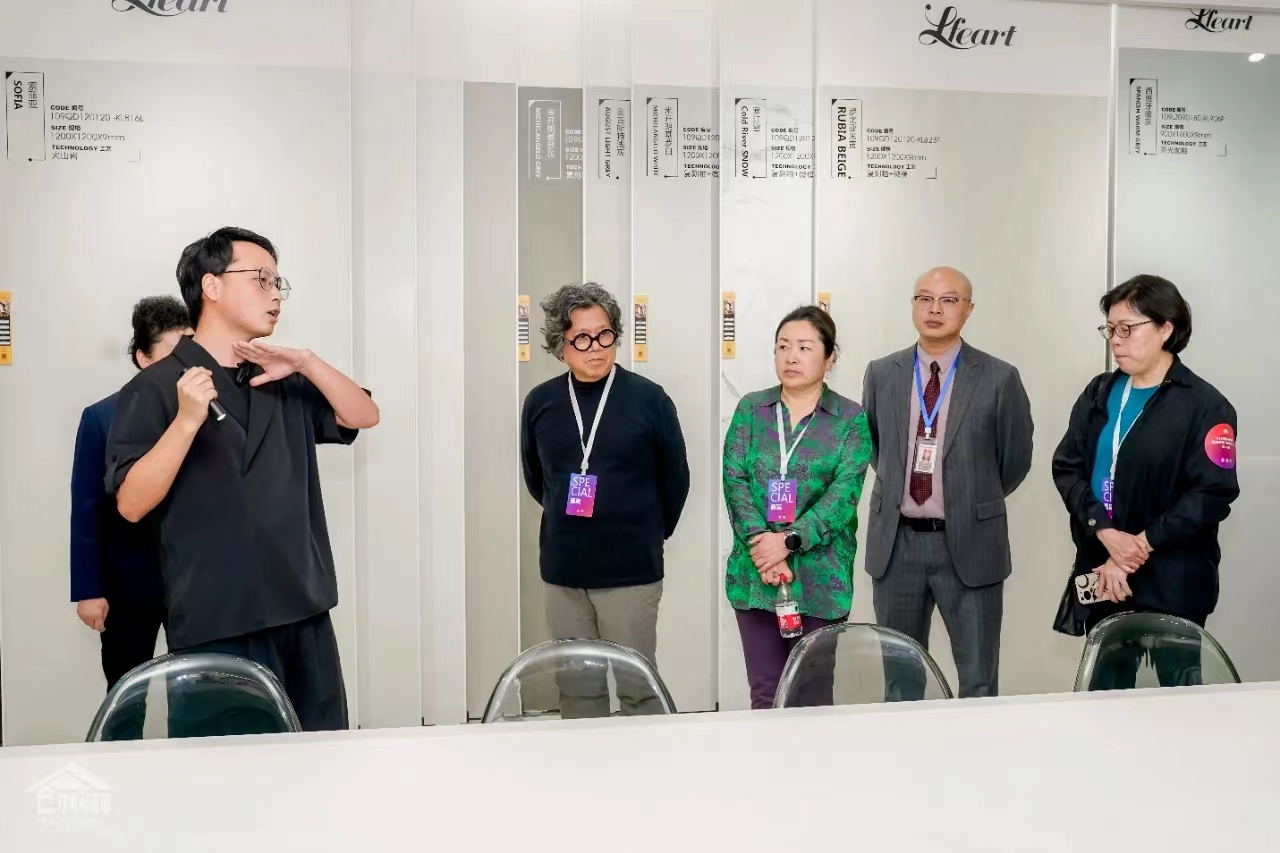 峨眉山金陶集團(tuán)公司副總經(jīng)理李曉剛、行政總監(jiān)黃華瓊、創(chuàng)意設(shè)計(jì)總監(jiān)尹天寶等領(lǐng)導(dǎo)全程接待,與專家們共同探討傳統(tǒng)文化與建筑裝飾(巖板)產(chǎn)品設(shè)計(jì)的深度融合,展現(xiàn)峨眉山金陶在傳統(tǒng)文化美學(xué)傳承與創(chuàng)新方面的魅力。