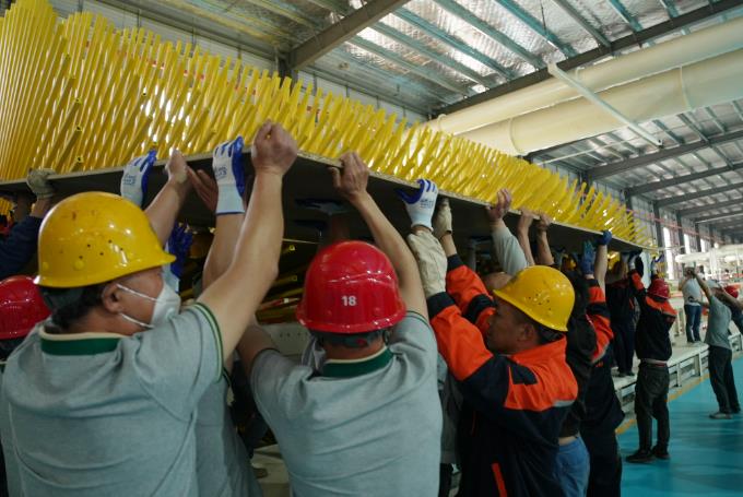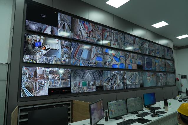 儀式現場 眾人齊力迎接首板下線 刨花板生產線局部 智控室內忙碌的工作人員 多功能智控室一角